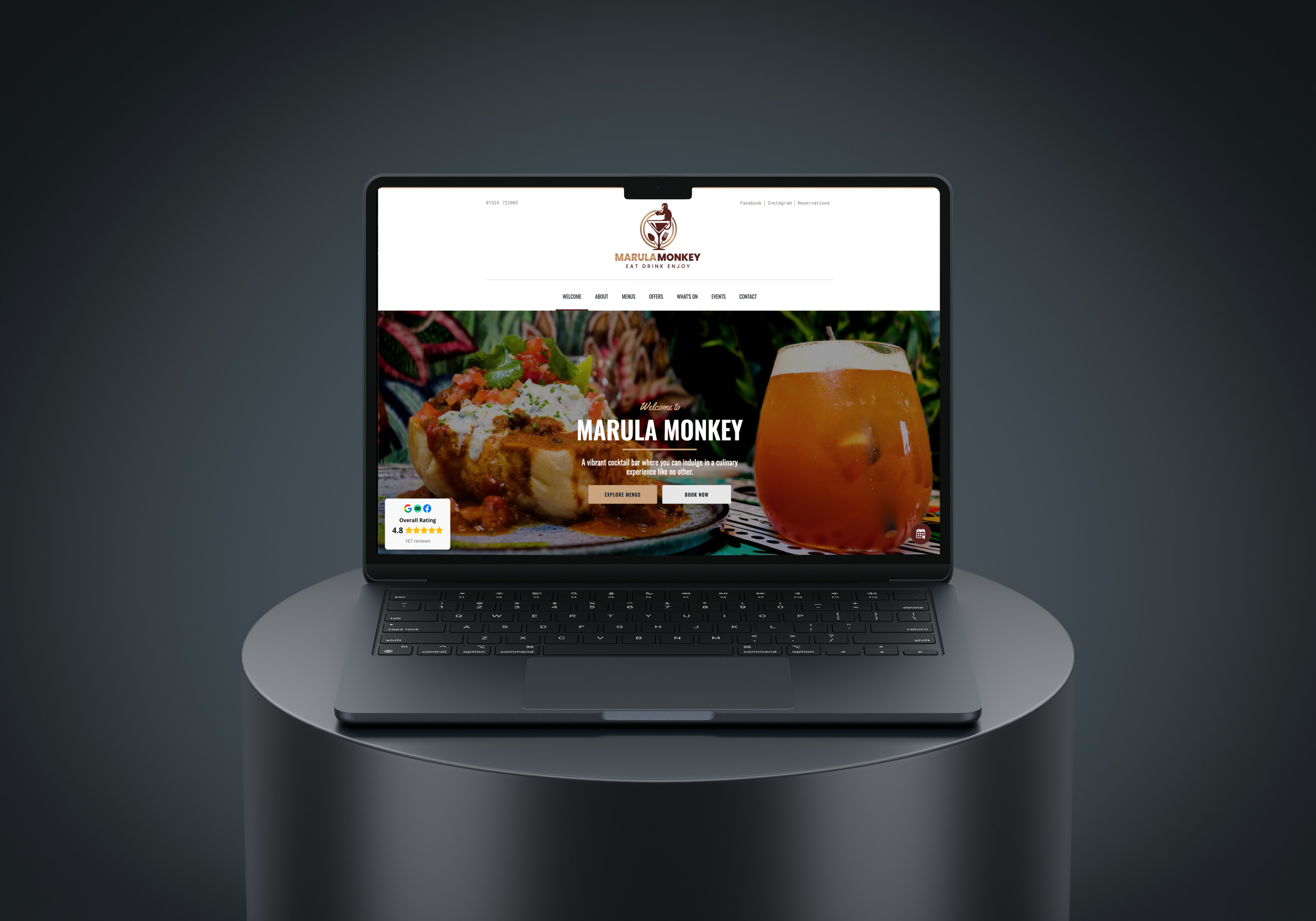 Marula Monkey is a lively cocktail bar known for late-night events, DJs and a bold, colourful brand. The old site didn’t reflect the venue’s personality, was hard to update, and made it difficult to promote weekly events or capture private-hire enquiries.